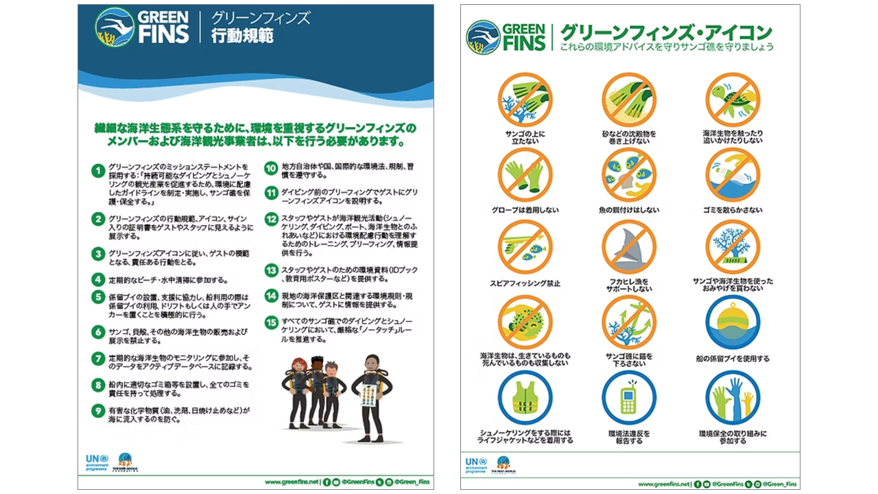 沖縄県では、環境にやさしいマリンレジャーの基準として、国連環境計画とリーフワールド財団が定めるGreen Finsのガイドラインを推奨しています。このガイドラインを導入しているマリンショップや、認定を受けているマリンショップを選ぶことが、海の環境を守る第一歩につながります。